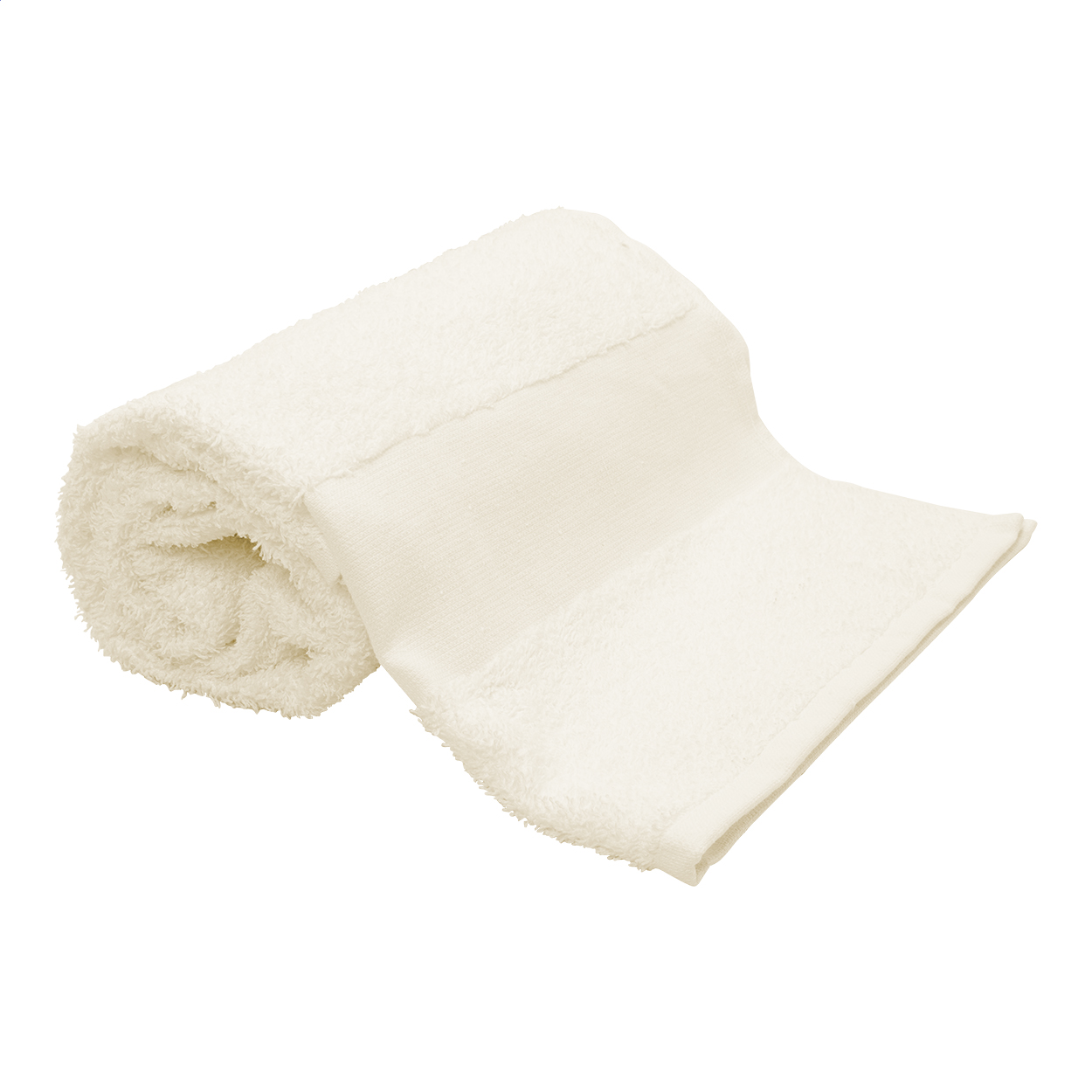 Pamut frottír vendégtörülköző akasztóval és nyomtatható szegéllyel. 100% pamut, 360 g/m².