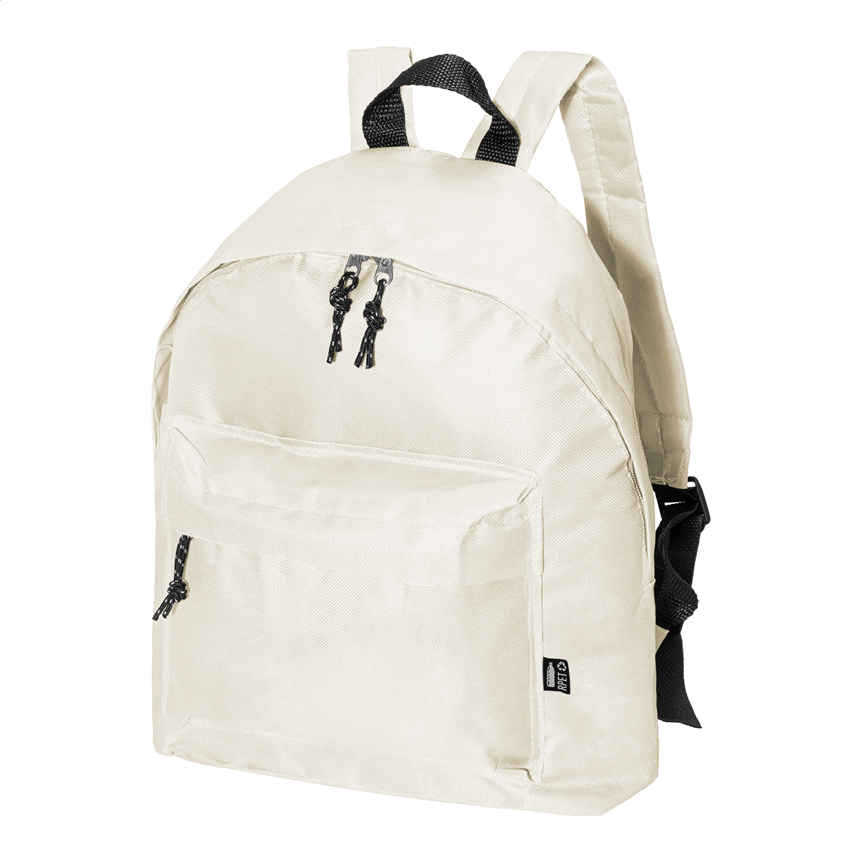 RPET hátizsák cipzáras fő rekesszel, cipzáras első zsebbel, párnázott hát- és vállpánttal. 600D RPET poliészter, megkülönböztető RPET címkével.