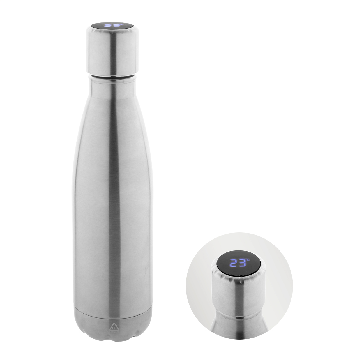 Duplafalú rozsdamentes acél fedelén érintőképernyős LED-es hőmérővel. 500 ml. Beépített, újratölthető akkumulátorral. USB töltőkábellel szállítjuk.