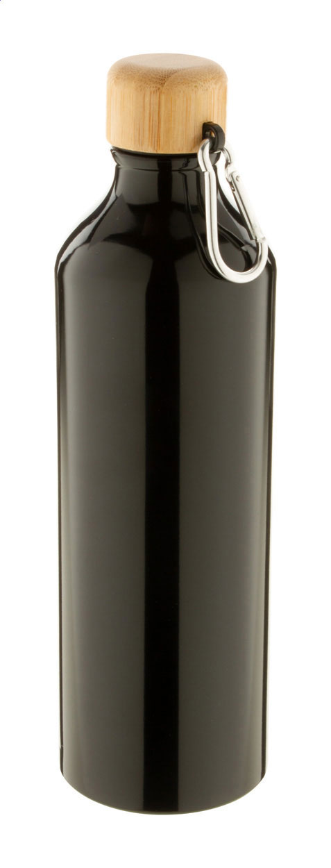 Alumínium kulacs bambusz kupakkal és karabinerrel, 800 ml.