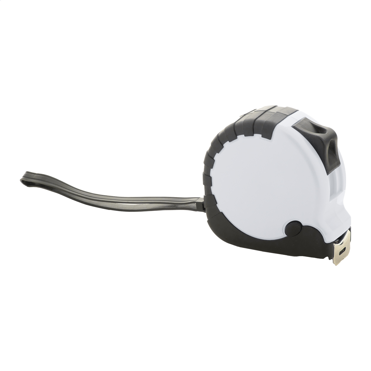 Újrahasznosított ABS műanyag mérőszalag fékező funkcióval, fém klipsszel és csuklópánttal, 5 m.