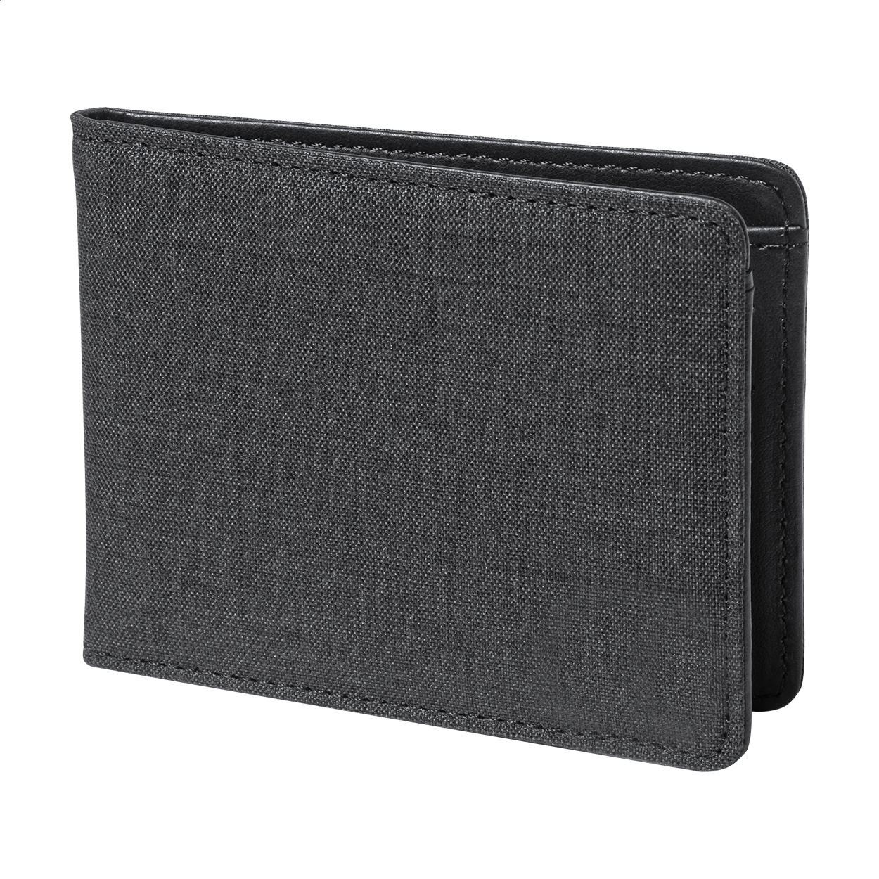 RFID védelemmel ellátott, RPET poliészter pénztárca 6 bankkártyatartó rekesszel.