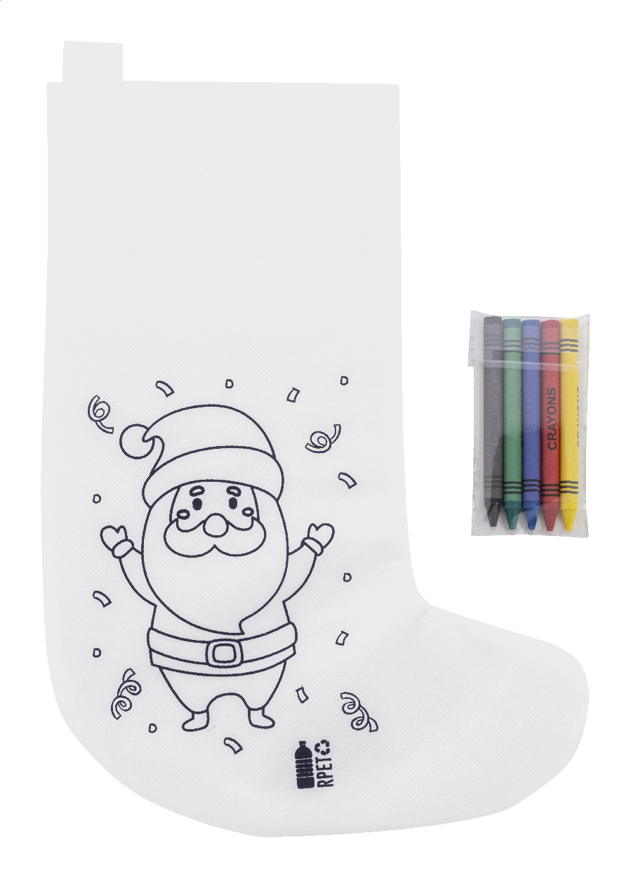 Karácsonyi színezhető zokni RPET non-woven anyagból, 5 db zsírkrétával.