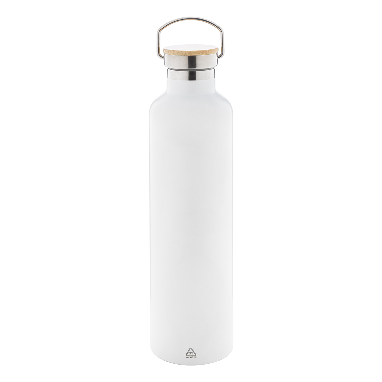 Duplafalú, újrahasznosított rozsdamentes acélból készült, vákuumszigetelt termosz bambusz tetővel, 1000 ml.