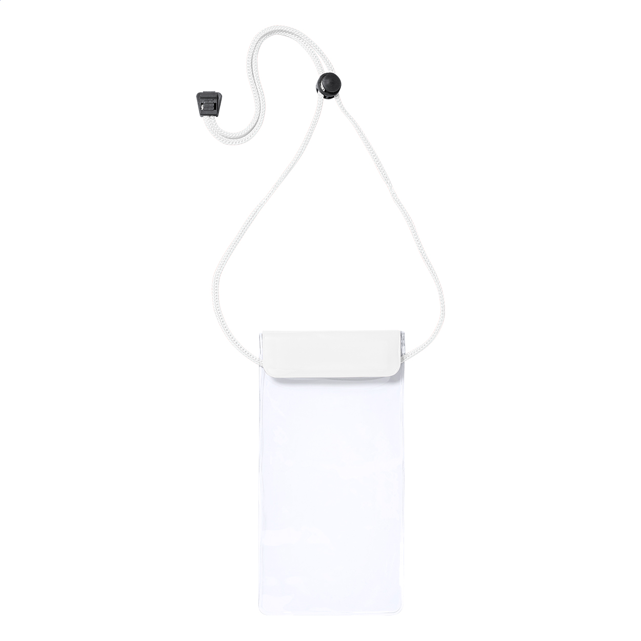PVC-ből készült, vízálló telefontok hozzáillő színű nyakpánttal. Legfejebb 6.5″ méretű, érintőképernyős telefonokhoz alkalmas.